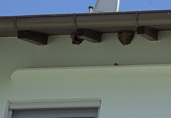 Im Frühjahr war die Freude groß, als die ortstreuen Mehlschwalben zurückkehrten und die Nester wieder in Beschlag nahmen. Aktuell sind vier Nester belegt, wie an den Kothäufchen auf den Brettern leicht zu erkennen. Der NABU Ober-Mörlen freut sich über das erfolgreiche Engagement der Hausbesitzer und dankt auch allen anderen Bürgerinnen und Bürgern, die sich an „ihren“ Schwalben erfreuen und entsprechend handeln.