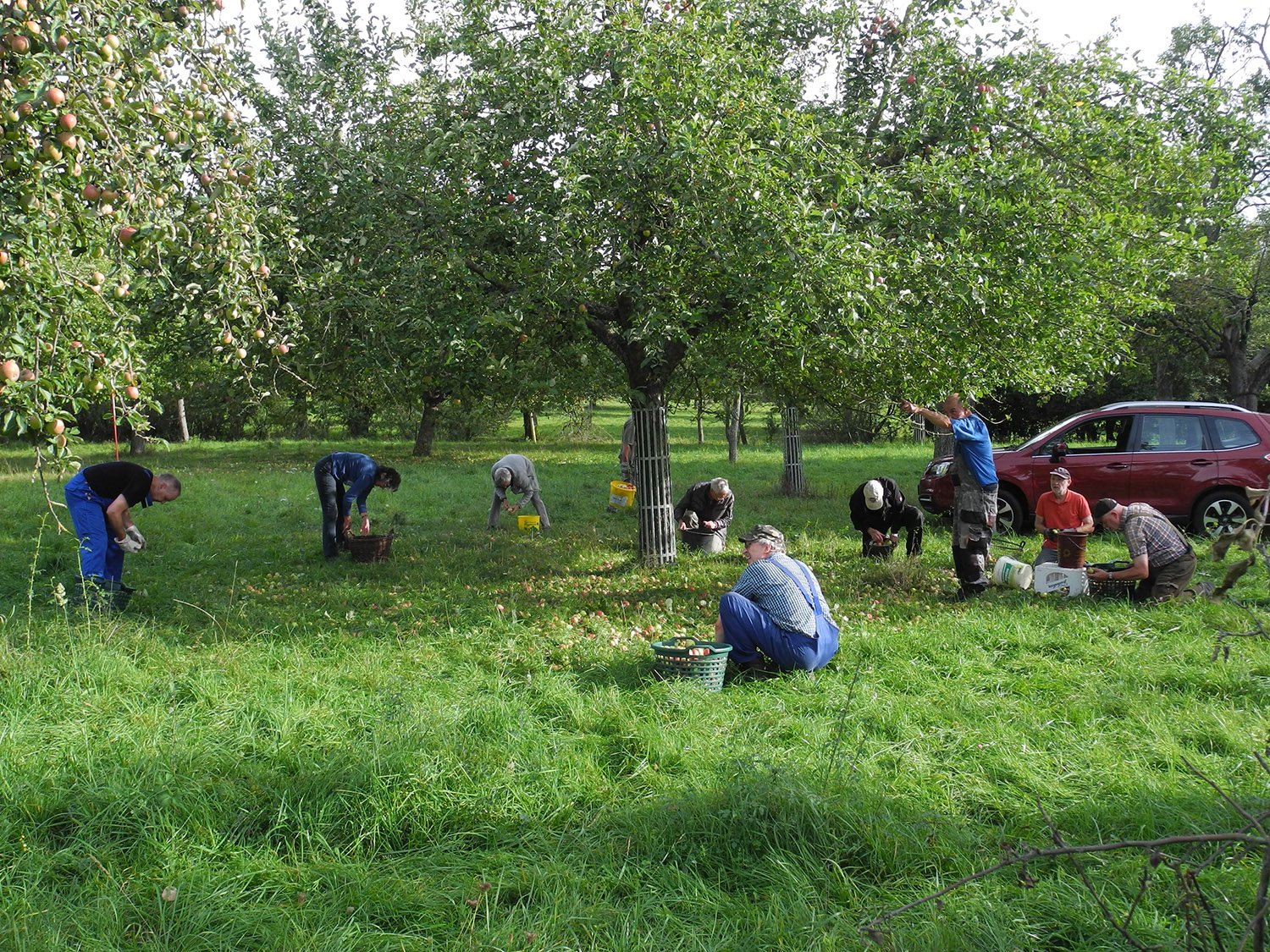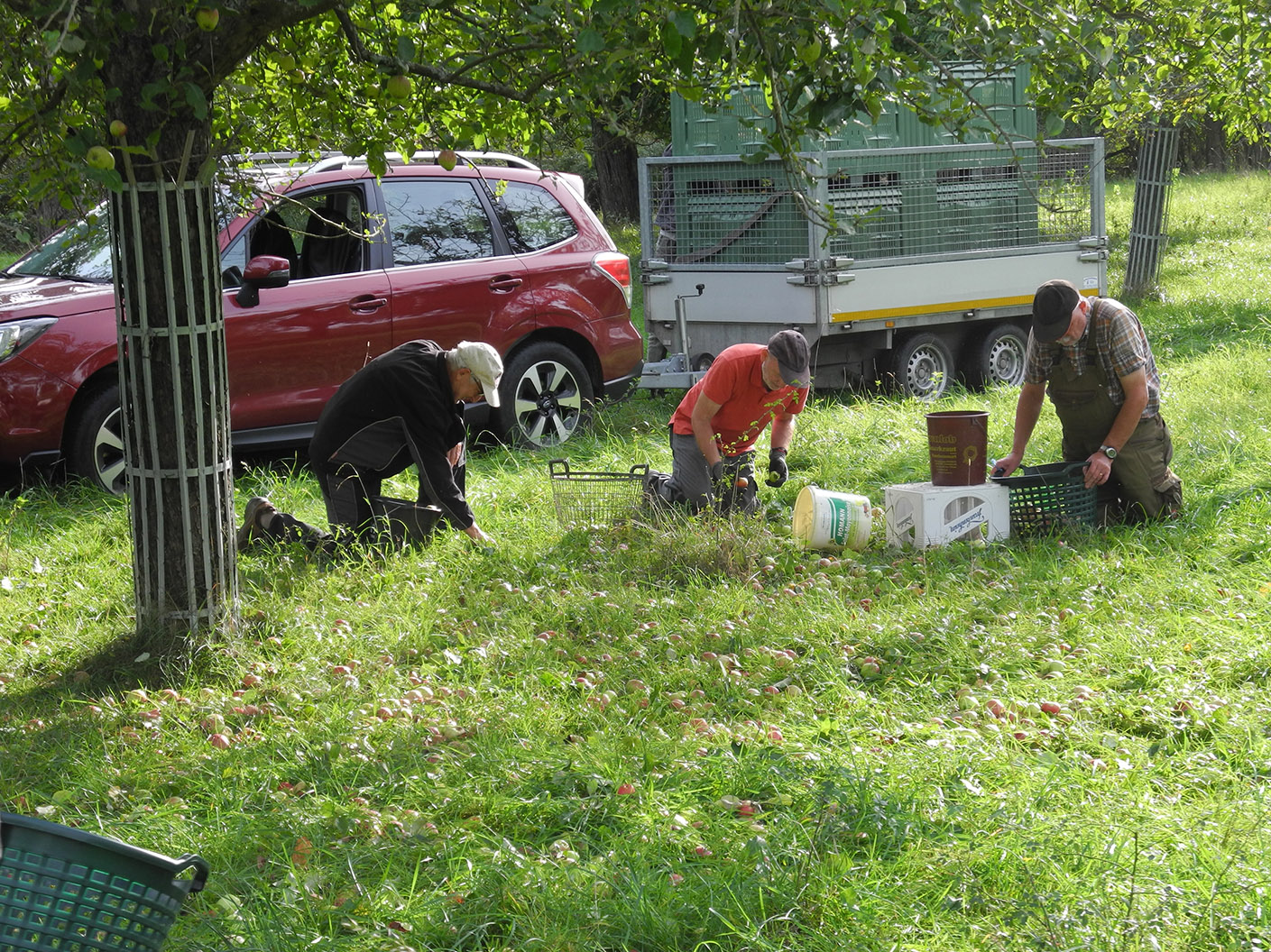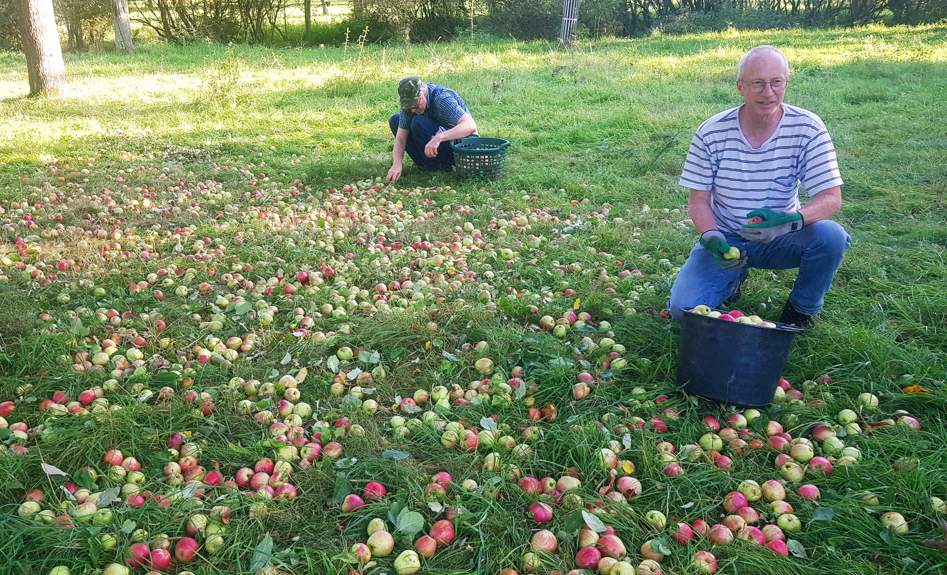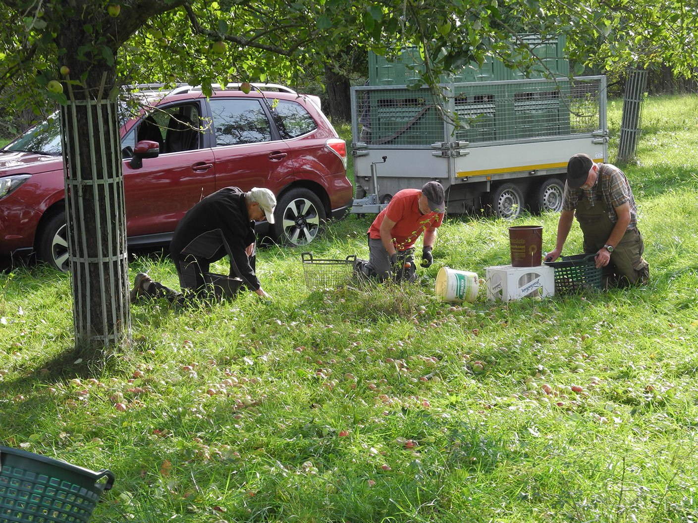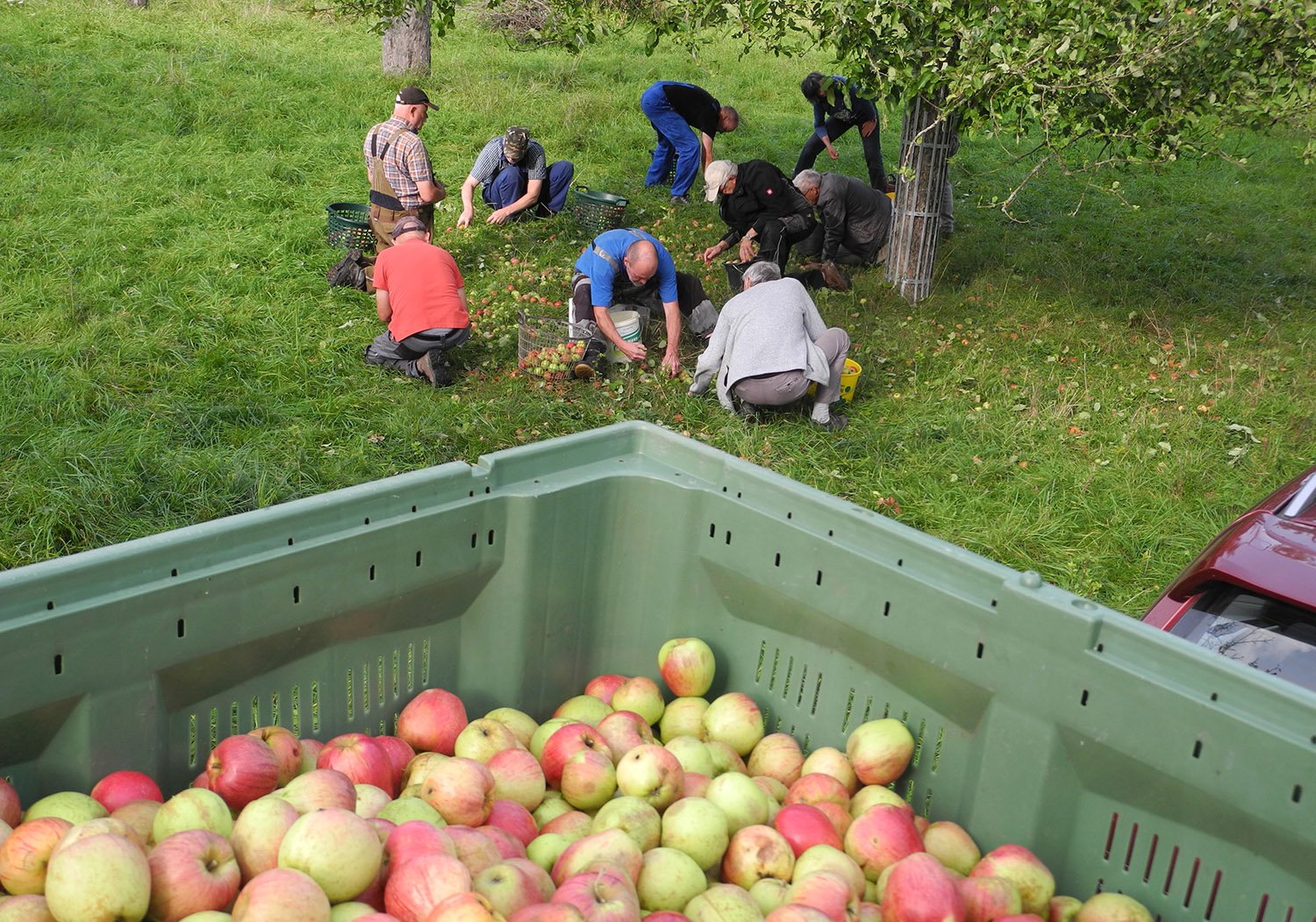 Zu drei Apfellese-Einsätzen trafen sich im Oktober bis zu elf Aktive der NABU-Gruppe auf den Vereinsobstwiesen. Während der Behang allgemein dieses Jahr eher unterdurchschnittlich war, sorgten auf der Parzelle 111 stark tragende Sorten wie Rheinischer Bohnapfel und Kaiser Wilhelm dafür, dass es viel zu schütteln und aufzulesen gab. Insgesamt 3,4 Tonnen Kelteräpfel konnten an die lokalen Kleinkeltereien geliefert werden. Die Erlöse werden im kommenden Winter umgehend wieder in die Pflege der Bäume investiert. Herzlichen Dank an alle Mitglieder, die mitgeholfen haben.
