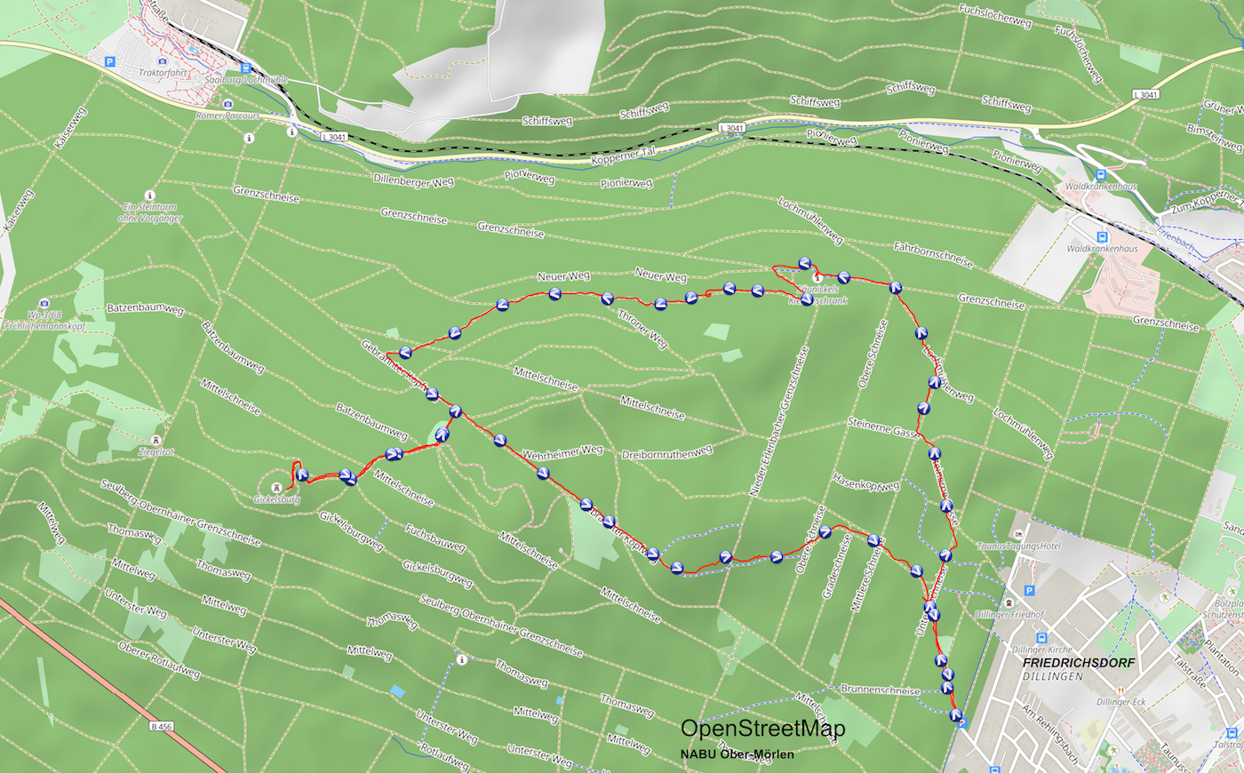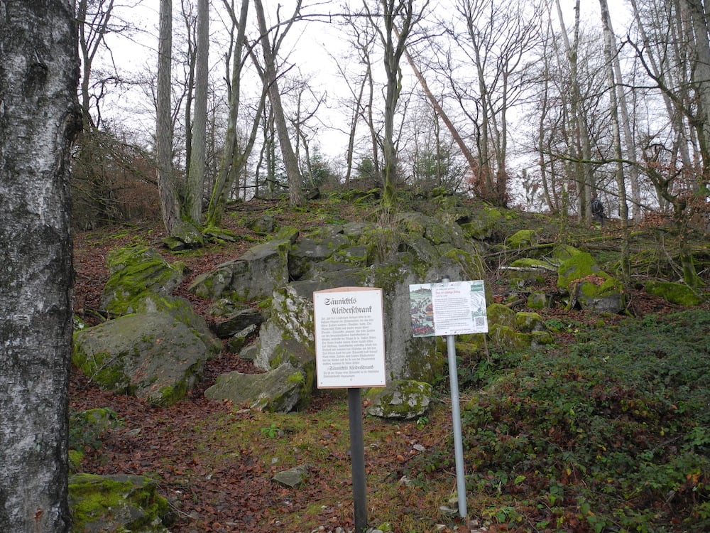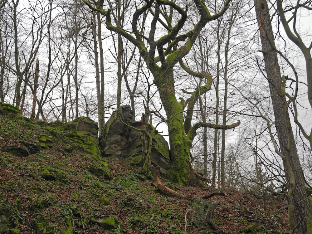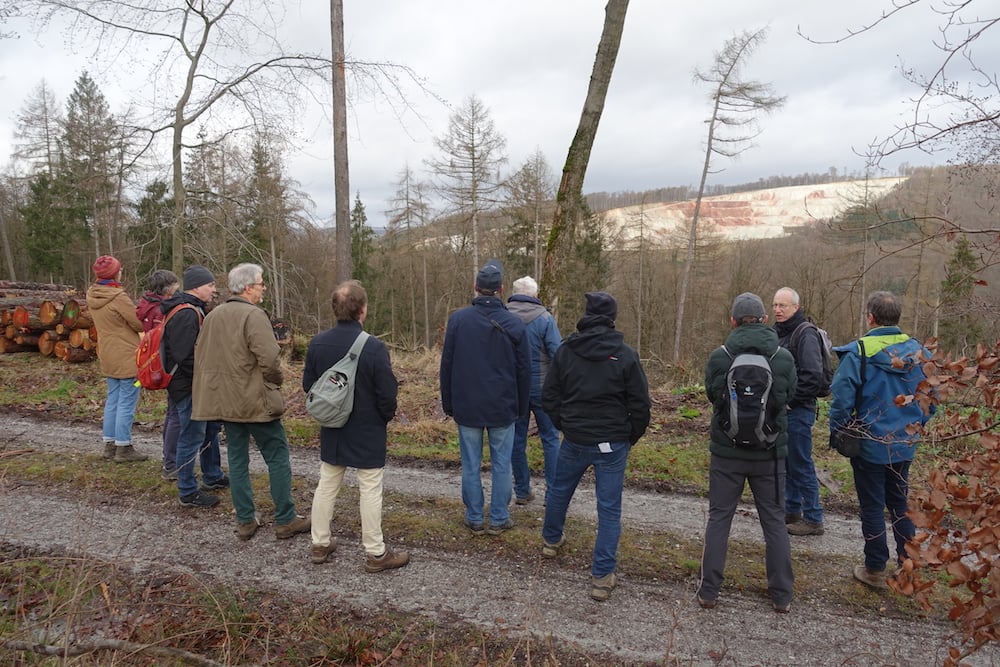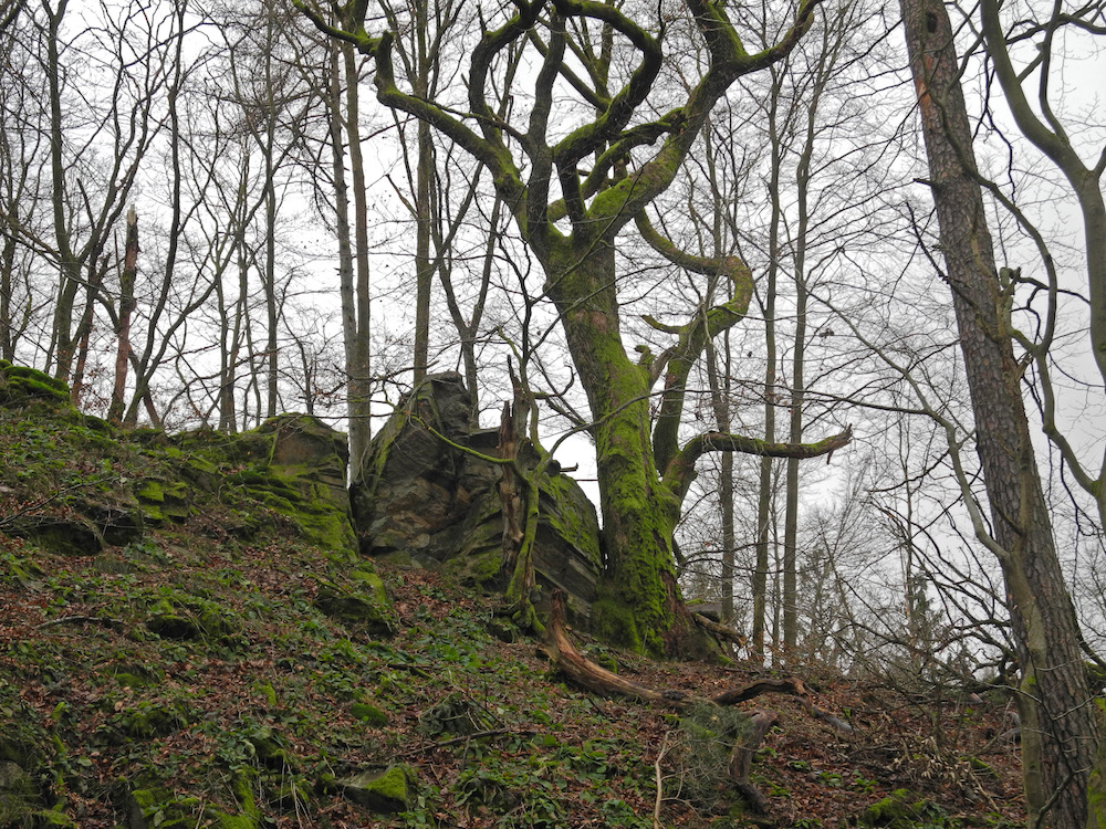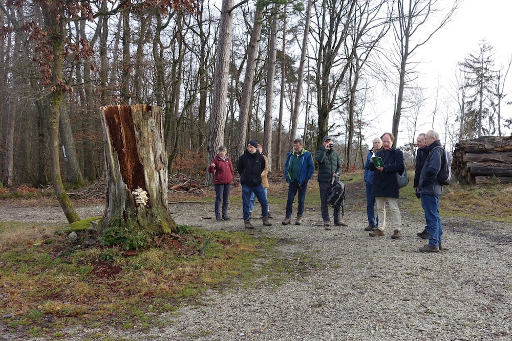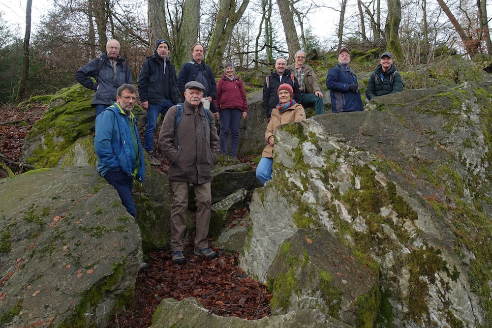 Seit Gründung der Naturschutzgruppe vor über vierzig Jahren ist die winterliche Wanderung zwischen den Jahren ein fester Bestandteil des Vereinslebens. Da ist es gar nicht so einfach, neue Ziele zu finden. Auch der zunehmende Mangel an Gasthäusern, die auf der Wanderstrecke liegen und mittags geöffnet haben, erschwert die Planung. So ist öfter eine kleine Anfahrt erforderlich. Diesmal steuerten die Fahrgemeinschaften den Ortsrand von Friedrichsdorf-Dillingen an, von wo aus eine etwa 12 Kilometer lange Strecke am Hang des Köpperner Tals entlang und über den Taunus-Hauptkamm zurück führte. Der Weg ging an „Säunickels Kleiderschrank“ vorbei, einer Felsformation, die mit einer traurigen Geschichte aus der Zeit des Dreißigjährigen Kriegs verbunden ist. An einer Stelle mit gutem Ausblick auf die hell leuchtenden Felswände auf der anderen Talseite gab es Infos über den größten Quarzit-Steinbruch Europas. Sehenswert waren auch die Baumgestalten auf einer Kuppe namens Odinsfels, während vom Naturdenkmal „Batzenbaum“ nur noch die untersten 2,5 m übrig waren. An der Gickelsburg, einer 470 m hohen Kuppe mit Ringwällen, war viel Fantasie nötig, um sich die Besiedlung in der Keltenzeit vorzustellen.