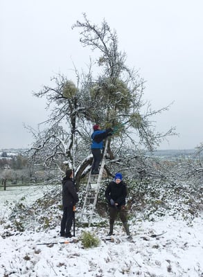 Am vergangenen Samstag traf sich eine muntere Schar von ca. 20 Kindern, um auf einer Fläche der Gemeinde unterhalb des Gelben Bergs Apfelbäume zu schneiden. Mit ausreichend Werkzeug ausgestattet ging es den Kindern und ihren Gruppenleitern gut von der Hand. Mit Bewegungsspielen quer über die Obstwiese wurde die Aktion aufgelockert. Zur Belohnung winkte – pünktlich vor Fasching und sehr willkommen – eine dicke Kiste mit Kräppeln.