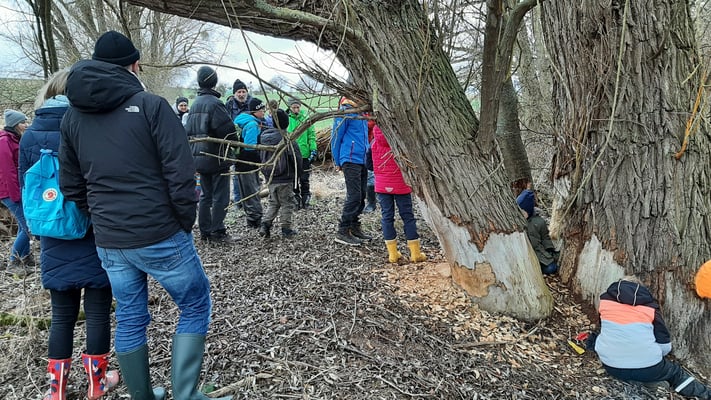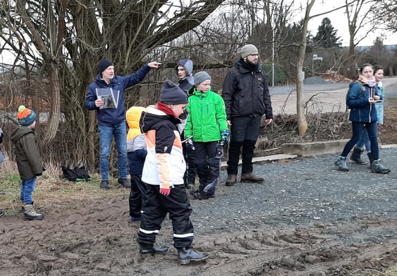 Einen tollen Start ins neue Jahr hatten wir mit unserer Bibertour an der Fauerbach entlang. Mit fast 30 Kindern, Eltern und Großeltern hat unser Biberbeauftragter Matthias Möbs die Fauerbach nach Biberspuren abgesucht. Biberdämme, Biberrutschen und -gänge sowie angeknabberte Äste waren nicht zu übersehen, spektakulär die Biberburg am Fauerbachteich. Faszinierend auch wie der Biber die Landschaft in der Fauerbachaue umgestaltet. Die anschaulichen und lehrreichen Ausführungen von Matthias Möbs und die Spieleinlagen der Jugendlichen taten ein Übriges, um den Naturschutzkindern einen tollen Nachmittag zu bieten.