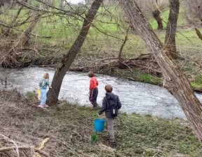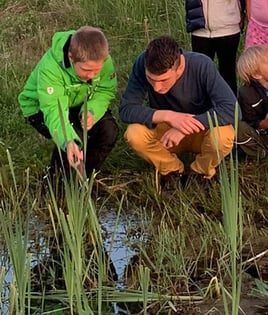 Für diese Aktion haben sich die Kinder und Jugendlichen am Parkplatz Vogeltal getroffen und sind von da aus in den Wald gezogen. Grasfrösche und Feuersalamander konnten entdeckt und beobachtet werden (Foto von Steffen König). Außerdem haben die Kinder gespielt.