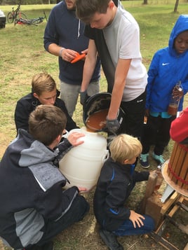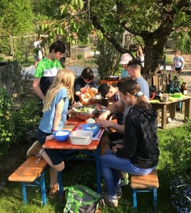 Viel Spaß hatten die Kinder und Jugendlichen bei einem Lagerfeuerabend in Kevins Garten. Für diesen Abend waren extra Hordentöpfe angeschafft worden, in denen mit viel Liebe eine schmackhafte Gemüsesuppe, mit wilden Kräutern angereichert, zubereitet wurde.